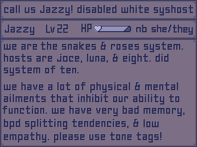 note that "jazzy" is our collective identity, but she is also her own person :)